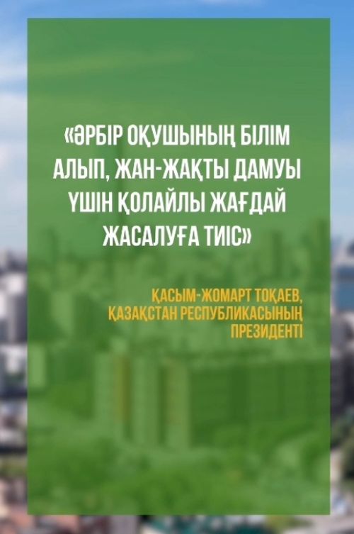 Мемлекет басшысының бастамасымен Қазақстанда бұрын-соңды болмаған, теңдессіз жаңа үлгідегі мектептер салынуда.