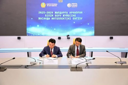 Бүгін Оқу-ағарту министрі Ғани Бейсембаев пен Цифрлық даму, инновациялар және аэроғарыш өнеркәсібі министрі Жаслан Мәдиев 2025–2029 жылдарға арналған орта, техникалық және кәсіптік, сондай-ақ орта білімнен кейінгі білім беру жүйесіне жасанды интеллектіні енгізудің тұжырымдамалық негіздерін бекіту туралы бірлескен бұйрыққа қол қойды.